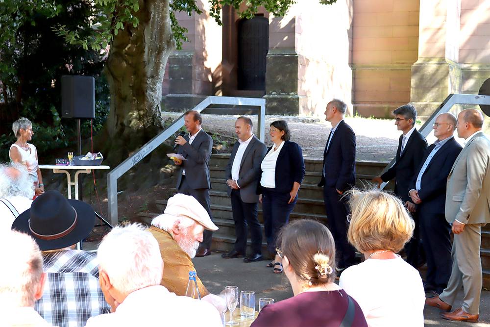 Im Anschluss an den Gottesdienst gab es einen Empfang vor dem evangelischen Gemeindehaus, für welchen Freundinnen und Freunde, Kolleginnen und Kollegen und Familienmitglieder von Frau Schäfer Beiträge vorbereitet hatten. Im Kreis der DekanInnen aus dem Süden der badischen Landeskirche wurde Dekanin Bärbel Schäfer mit folgenden Worten beschrieben: „Du hast stets frischen Wind in die Südprälatur gebracht.“ und „Du bist der Porsche unter uns“, denn sie habe zum Wohle aller für eine straffe Veranstaltungsorganisation und Zielstrebigkeit oft „Gas gegeben“ und auf hohe Qualität durch Information, Debatte und Kreativität in der Entscheidungsfindung geachtet.