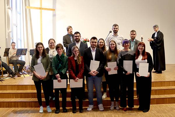 Im Anschluss hatten die 12 Diakoninnen und Diakone Vanessa Beck, Hans-Christian Benner, Joëlle Böttcher, Nicole Faller, Nils Latschinske, Amy Lindenmeyer, Hannah Mautner, Frieder Rühle, Jana Schell, Mareke Tschan, Luisa Walz und Paul Wendel die Möglichkeit bei einem Empfang die Glückwünsche der Gemeinde, Familie und Freunde entgegenzunehmen.